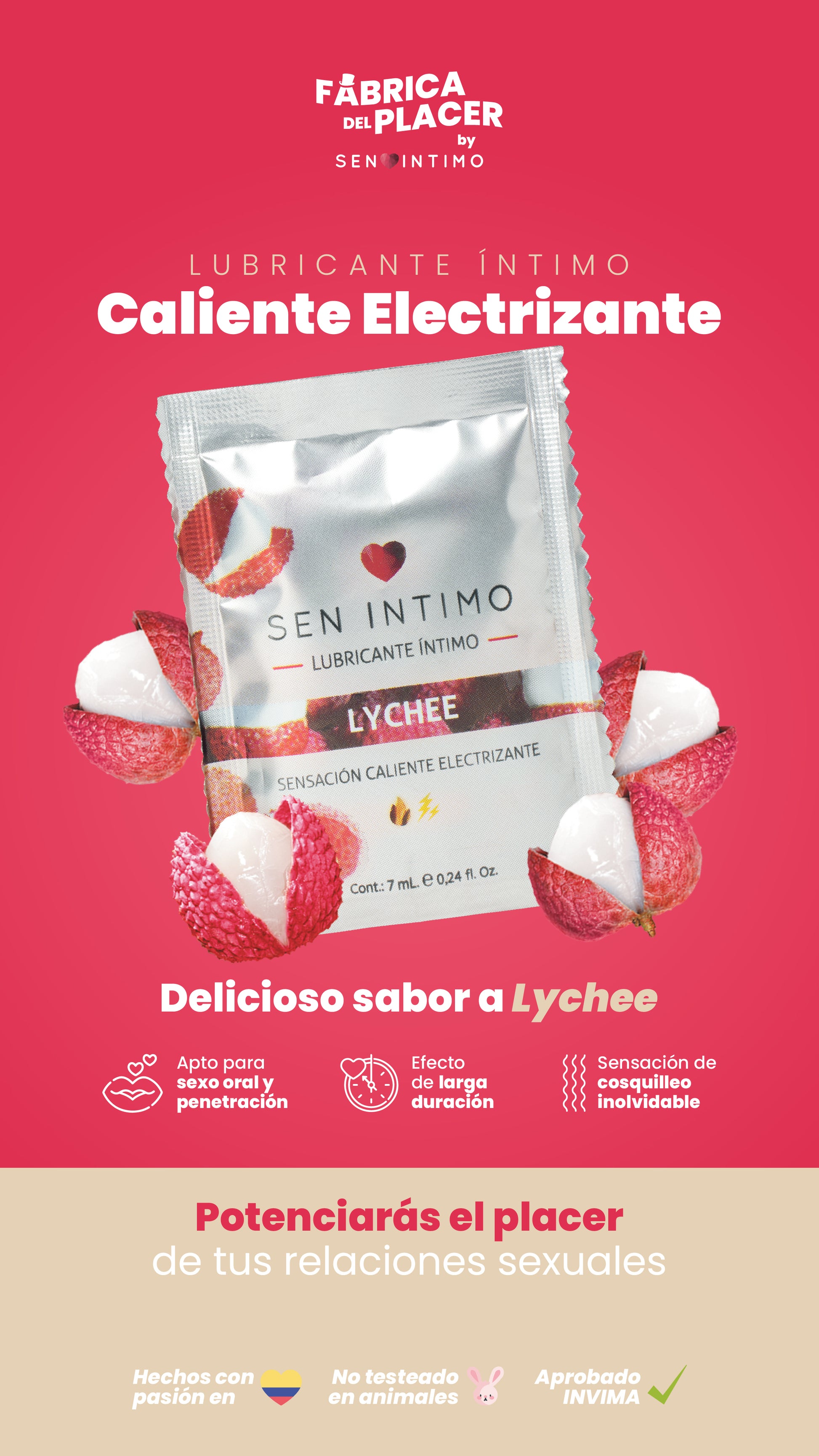 Con nuestro Lubricante con sabor a Lychee y sensación caliente Electrizante, potenciarás el placer de tus relaciones íntimas y además con un toque especial: el sabor que más te gusta y una sensación de cosquilleo inolvidable.